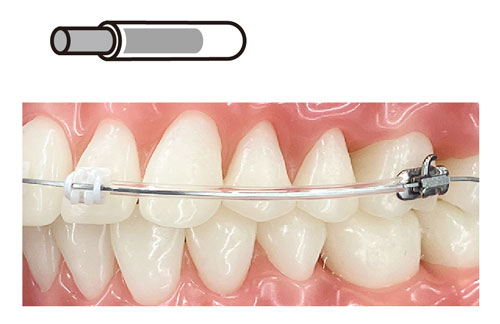 - 曲げやすく歯面にフィットさせやすいフラット形状のワイヤー